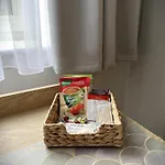 The rooms are equipped with coffee and tea making facilities, along with a flat-screen TV with satellite channels for guests' comfort. Also, you will find coffee and tea making machines, a refrigerator, and kitchenware provided. Bathrooms inlude a separate toilet and a shower, and such fine comforts as a hairdryer and bath sheets.